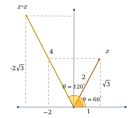 复数z再乘以z,在坐标系上相当于将z的模长乘以2,并且逆时针旋转了z的幅角60度。