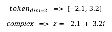 作者首先从最简单的二维角度考虑,假设q和k的embedding维度都是2维,将变换后的q,k用复数进行表示,其中第一维为复数的实部,第二维为复数的虚部,以一个[-2.1, 3.2]的二维向量为例,复数形式表示如下