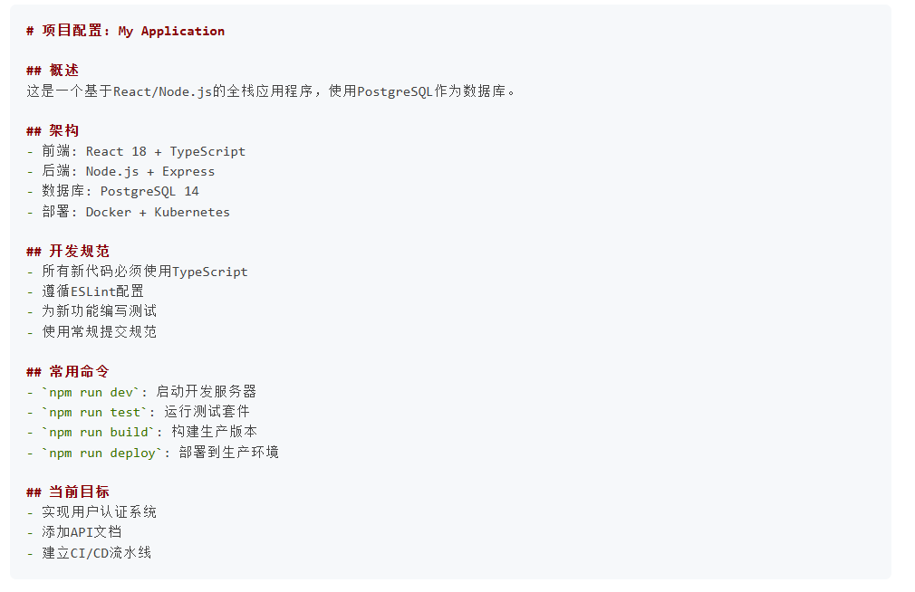 这种设计使得AI能够在每次对话中都记住项目的特定要求和约定,从而提供更加个性化和准确的帮助。