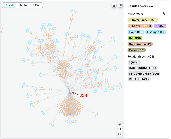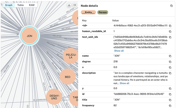 如你所见,去重有时并不完美。此外,GraphRAG不处理实体消歧(例如,Jon和Jon Márquez将是独立的节点,尽管它们指的是同一个人)。