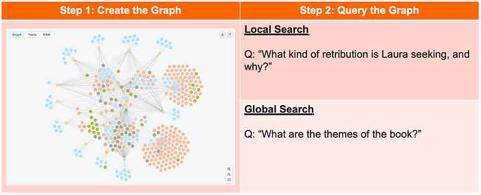 - 图创建阶段:将非结构化文本转化为结构化知识图谱,核心是 “实体提取” 与 “社区划分”,前者构建基础 “节点 - 边” 网络,后者挖掘网络中的主题聚类;