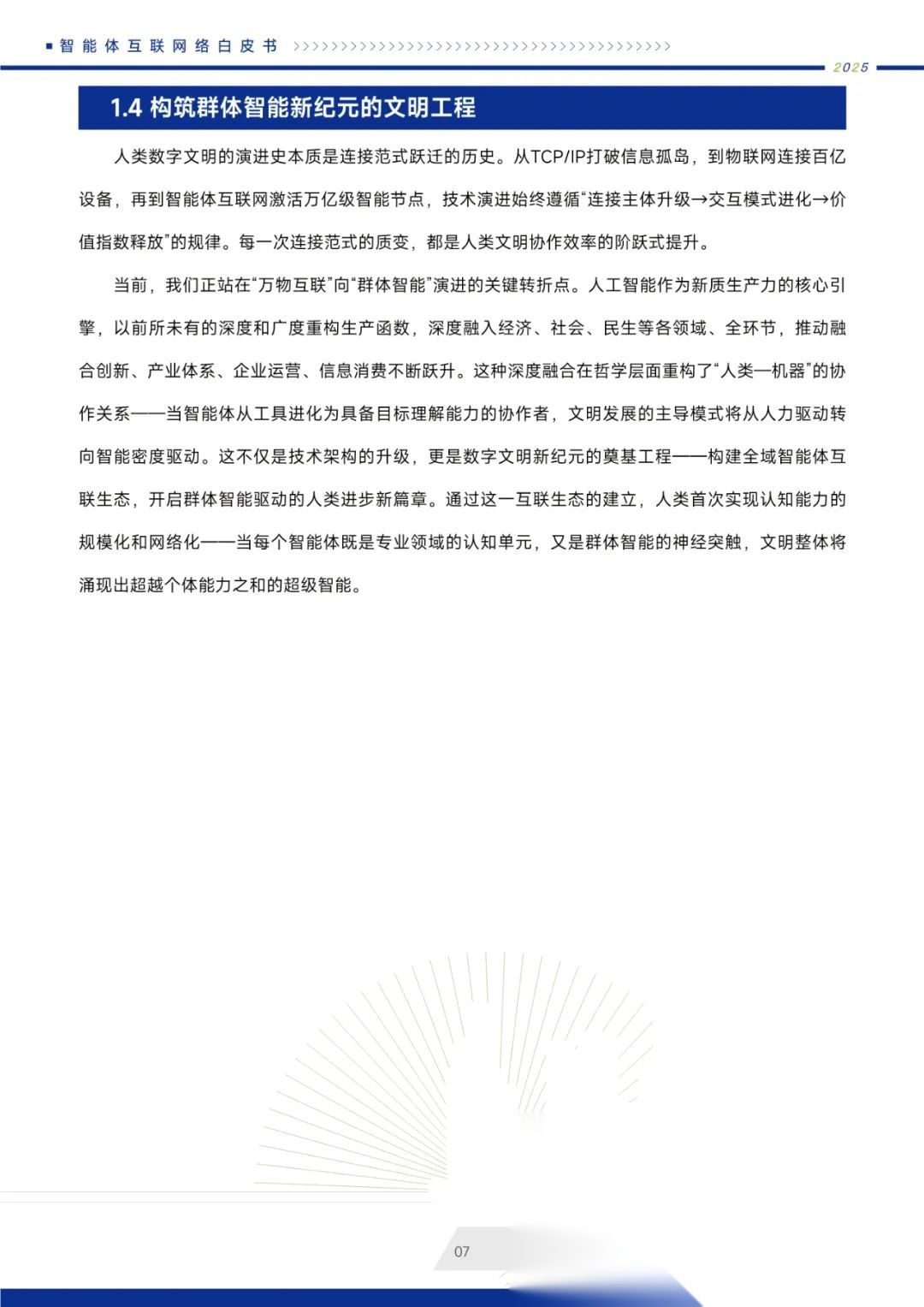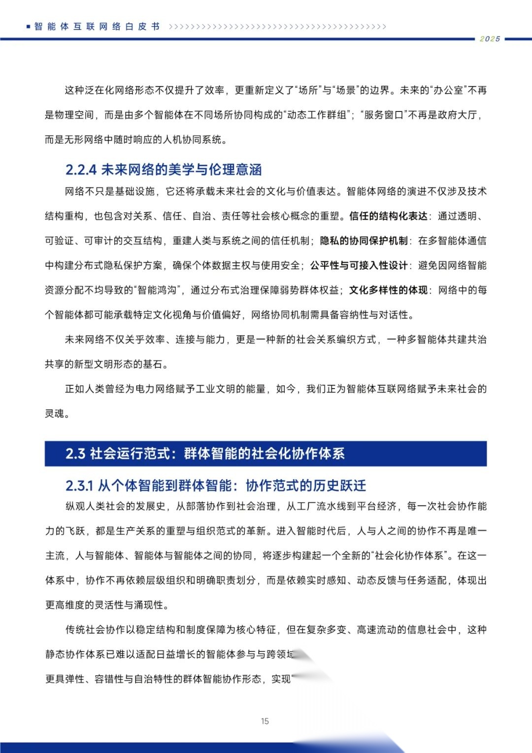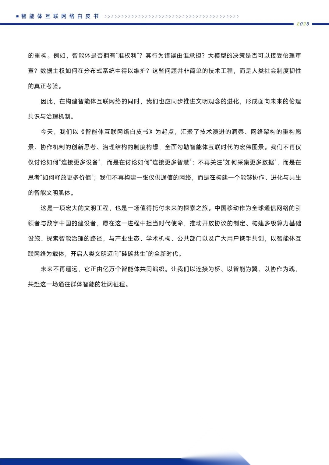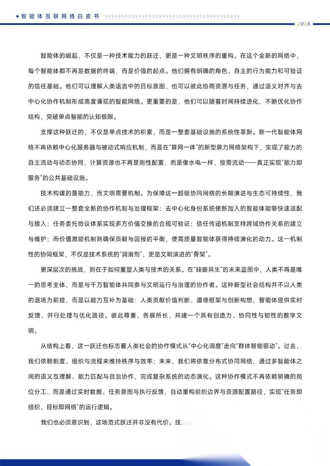 白皮书还详细探讨了智能体互联网络在产业升级、社会治理、民生服务等领域的应用前景,描绘了一个由群体智能驱动的全新文明形态。