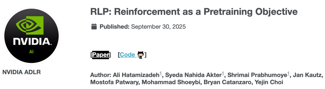英伟达的研究团队刚发布了一个让人眼前一亮的技术:RLP(强化学习预训练)。