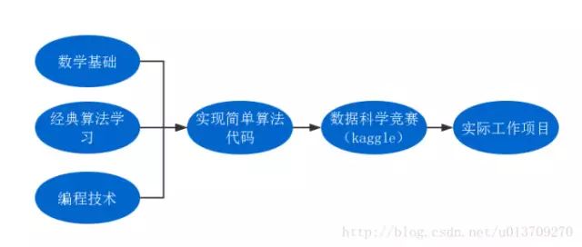 在互联网领域从事机器学习的人基本上属于以下两种背景:其中绝大部分是程序员出身,这类童鞋工程经验相对会多一些;另一部分是学数学统计领域的,这部分童鞋理论基础相对扎实一些。因此对比上图,这二类童鞋入门机器学习,所欠缺和需要加强的部分是不一样的。
