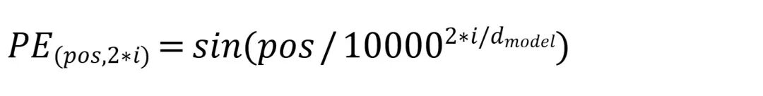 我们需要的位置编码要能够表征一定的相对位置关系。Transformer的作者使用了周期性的三角函数来编码位置信息,公式如下: