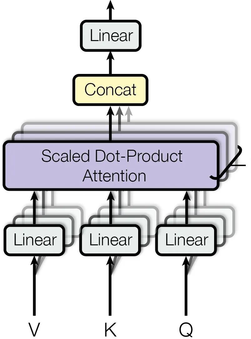 实现了一次Attention处理其实还不够,作者在论文里面写道,发现“如果使用多个并行的Attention模块来处理信息,会得到更好的模型表现”——就形成了著名的“多头注意力机制(Multi-Head Attention )”。