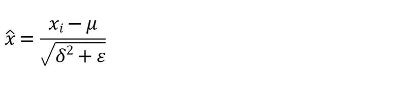 第三,把token embedding向量每个维度都标准化,得到处理后的向量x_hat;这里epsilon是一个非常小的非零常数,加在这里是为了防止分母为零;