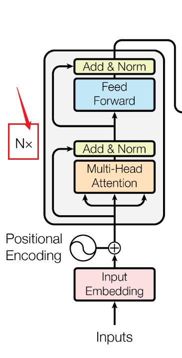 看到旁边那个被框起来的N了吗?N代表着这样的基本模块在Transformer encoder中有N个,前一个的输出是后一个的输入。