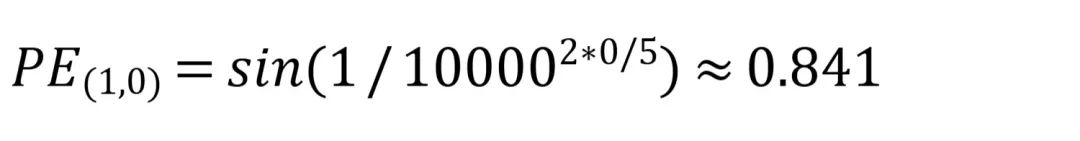 对于第一个token“This”来说,它的pos=1,d_model=5;这5个维度分别对应的i是0、0、1、1、2。把这几个数字带入公式就能得到“This”第一个维度的位置编码为: