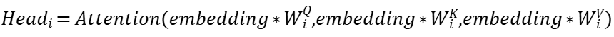 给原始embedding矩阵乘以“不同组的”参数矩阵W_iQ、W_iK、W_i^V,就能够形成多个“Q_i、K_i、V_i组”。其中i表示第几个Head,每个Head的线性变换矩阵与其他Head的相独立。