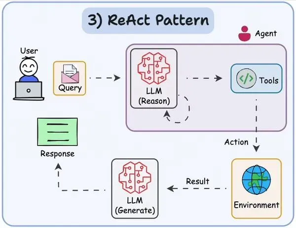 ReAct 模式 | 强调敏捷和环境适应的反应式动态迭代循环 | 机器人控制、客服工单处理 | 推理型 LLM + 工具集模块 + 执行模块 + 结果记忆模块 + 反思模块 |