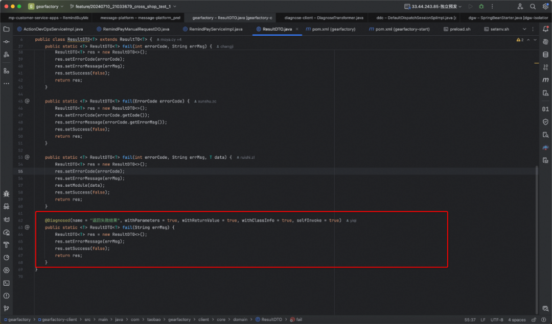 对静态方法 ResultDTO.fail 也加上 @Diagnosed 注解。