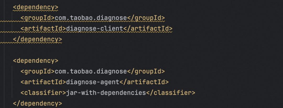diagnose-agent 包只定义了与业务无关的依赖,如 ByteBuddy。diagnose-client 中定义了 Spring,log 相关的依赖。