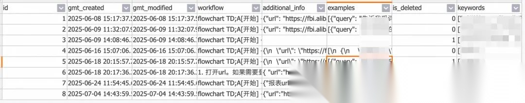 定义表结构如下,通过Postgres MCP,让agent在执行任务前,把用户的提问与表中的keywords进行匹配,找到符合场景的详细信息,就可以实现精准的“RAG”。(若使用ideaLab,可以在项目中提供查表接口,在ideaLab中封装成工具)