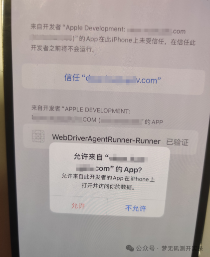 使用方案一在进行构建时,可能会出现构建失败,或者在安装 ipa 的时候会出现中断报错,这是因为我们在新的设备上没有信任该开发者账号。(ios17 之前貌似不用)