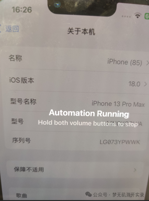 设备上显示 Automation Running 动态水印样式