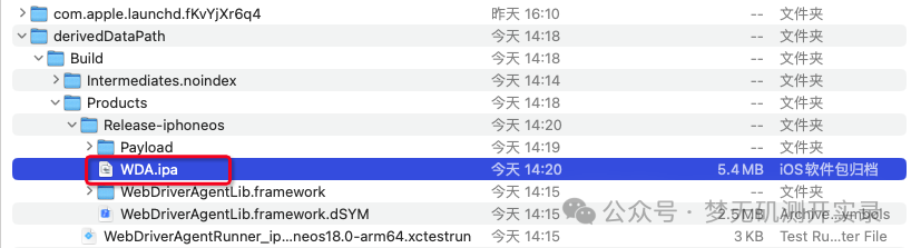 打开访达,shift+command+g 在出现的窗口中输入 /tmp,斜杆必须写,这样可以进去对应目录吧 WDA.ipa 拖出来。