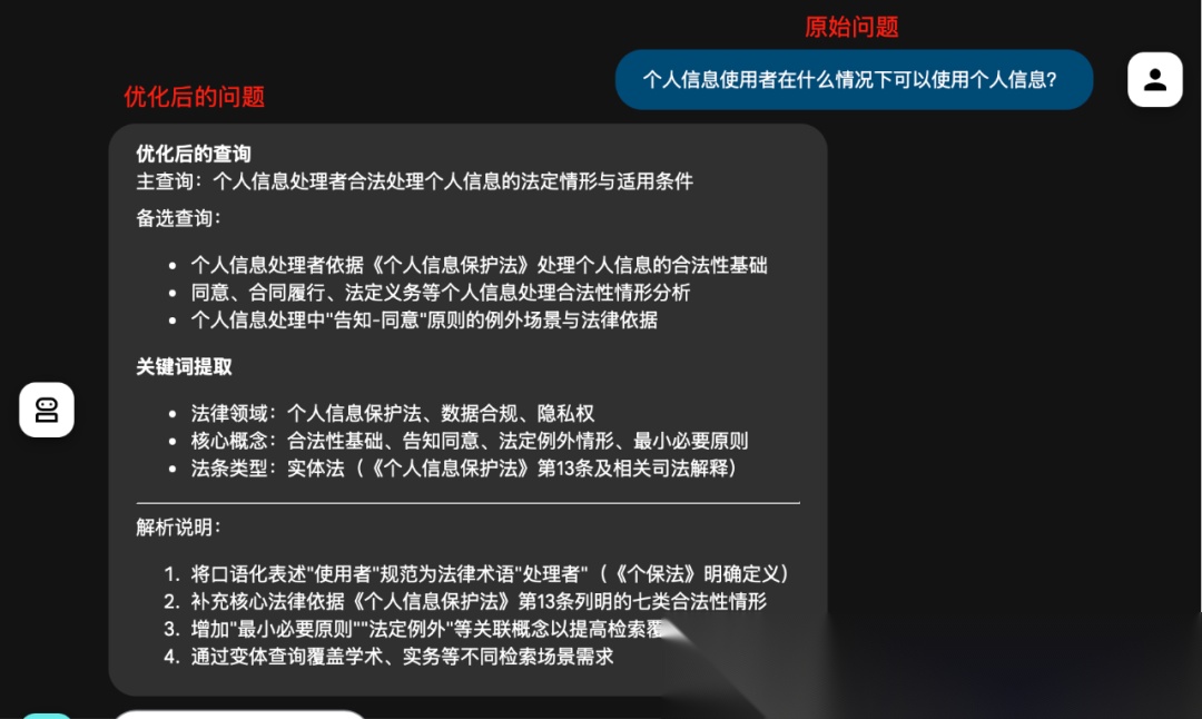 1. 查询前:对用户输入进行 查询重写,优化问题质量(关键词提取、规范表述、信息补全)。
