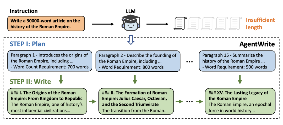 其次,模型依次完成每个子任务,并将生成的段落串联起来,最终形成完整的长文本输出。