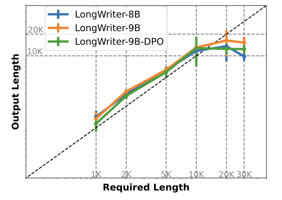 3. LongWriter 模型的输出长度限制大概 10k 至 20k 字之间,如果想让模型拥有更长输出的能力,则需要更长输出的数据集。