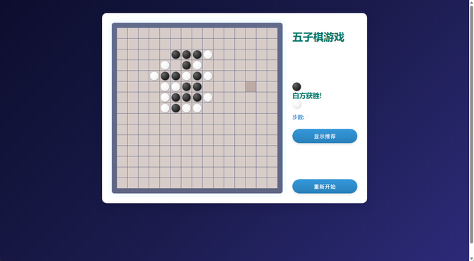 输入提示词:创建一个game.html文件,用html代码实现一个五子棋小游戏。