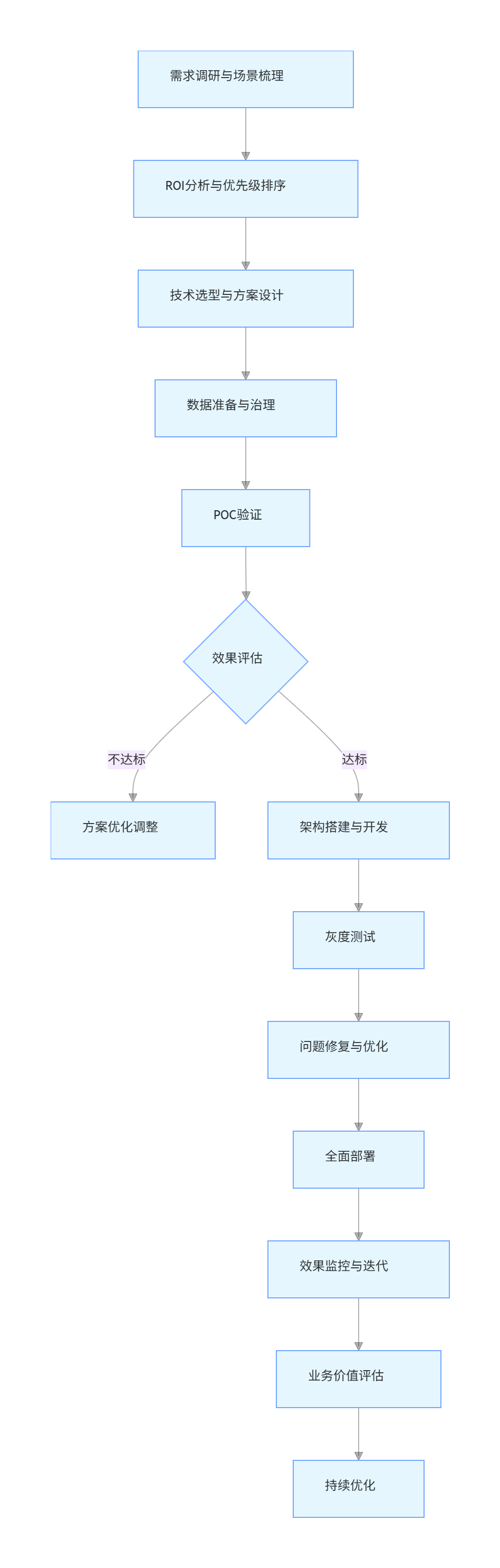 A[需求调研与场景梳理] --> B[ROI分析与优先级排序]