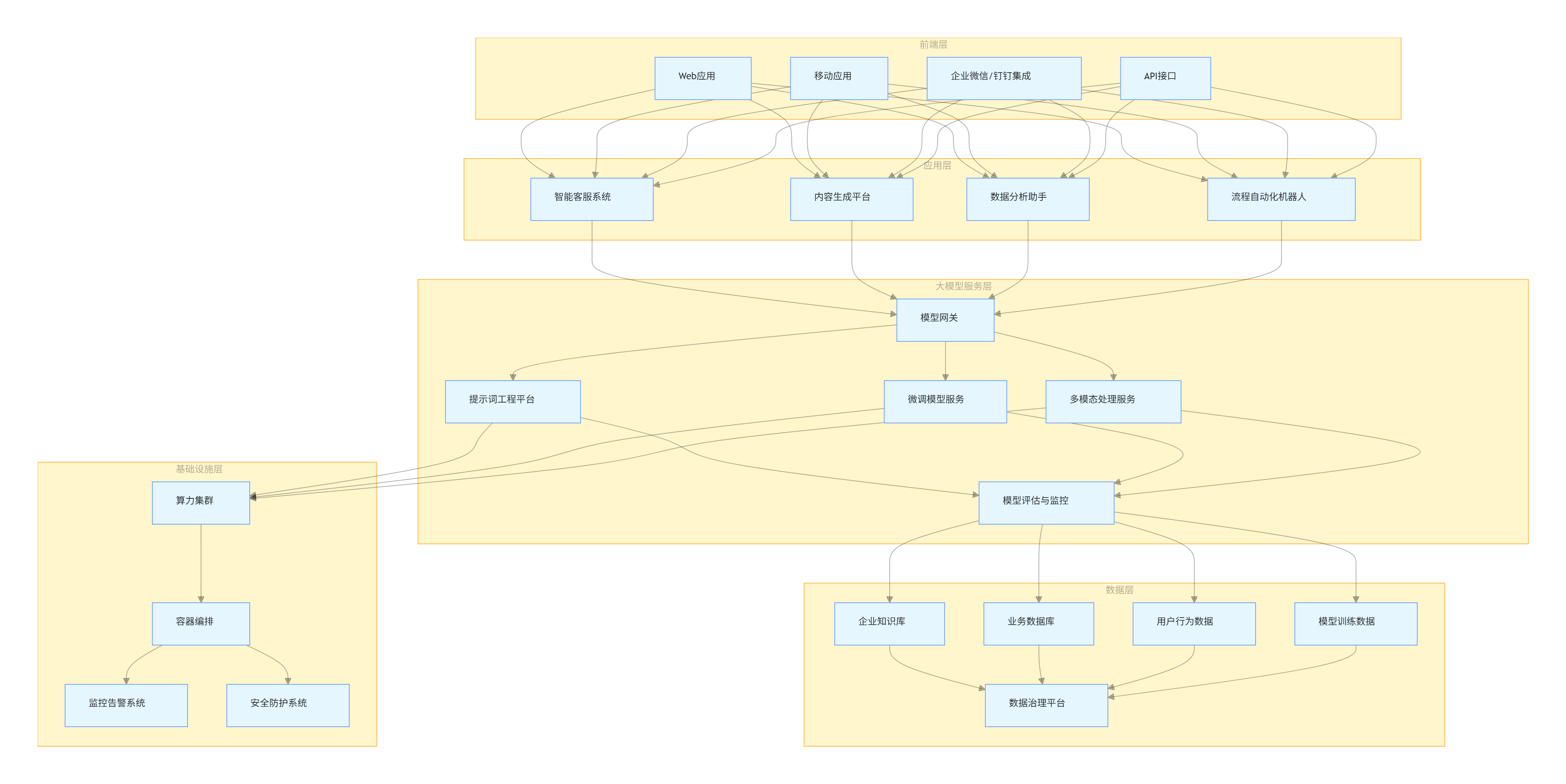 企业级解决方案 | 整合大模型技术与企业业务系统 | 企业全量业务数据 | 高(需算力集群 + 工程架构) | 长(2-6 月) | 企业核心业务系统升级(如智能客服、供应链优化) |