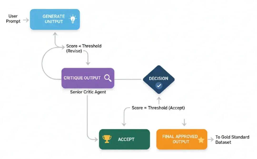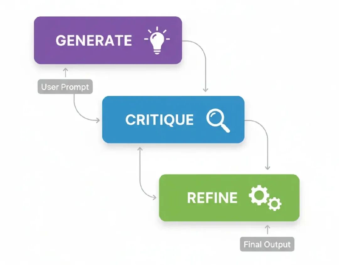- Critique: 然后代理切换角色,成为自己的批评者。它分析草案找缺陷,问像“是这个正确吗?”、“这个高效吗?”或“我漏了什么?”这样的问题。
