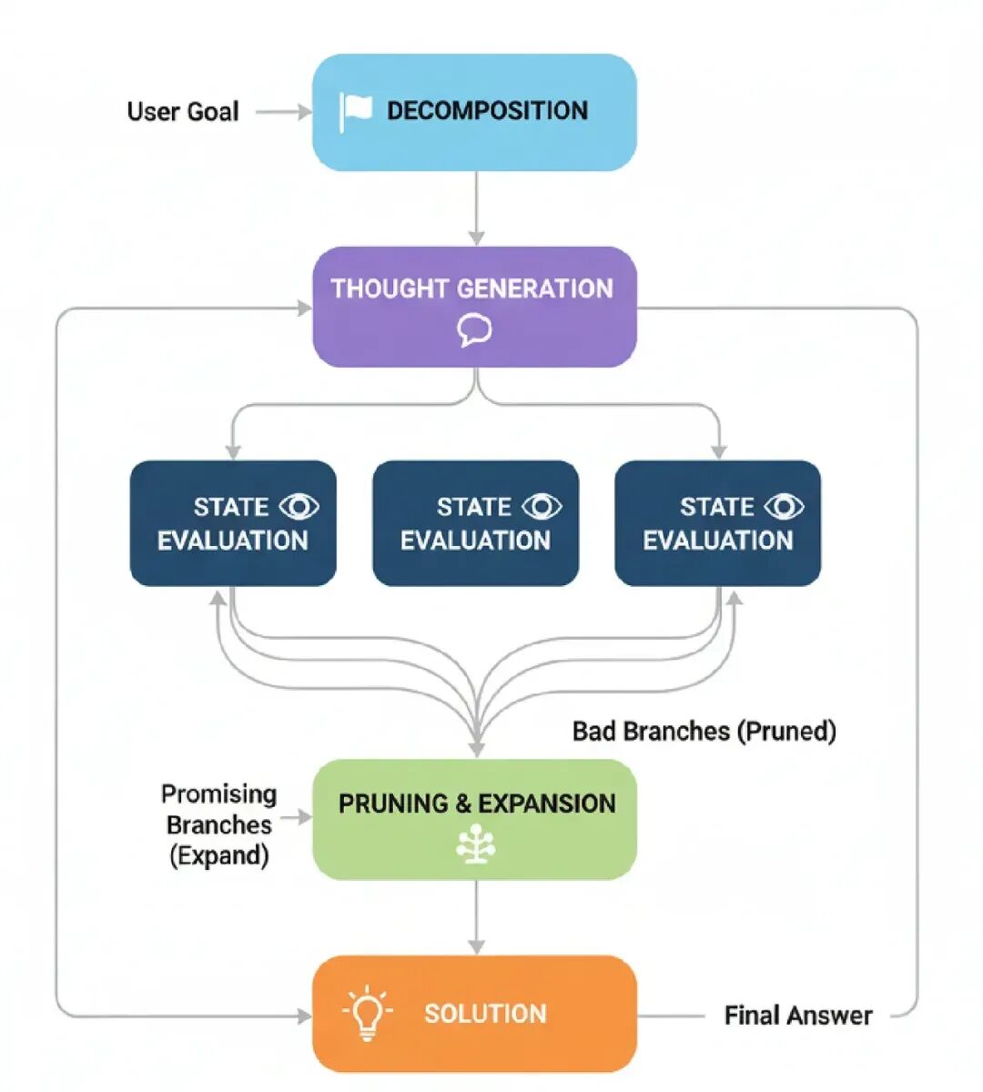 - Tree-of-Thoughts,在这个系统中,代理会探索很多不同的推理路径,然后选择最有前景的方向。