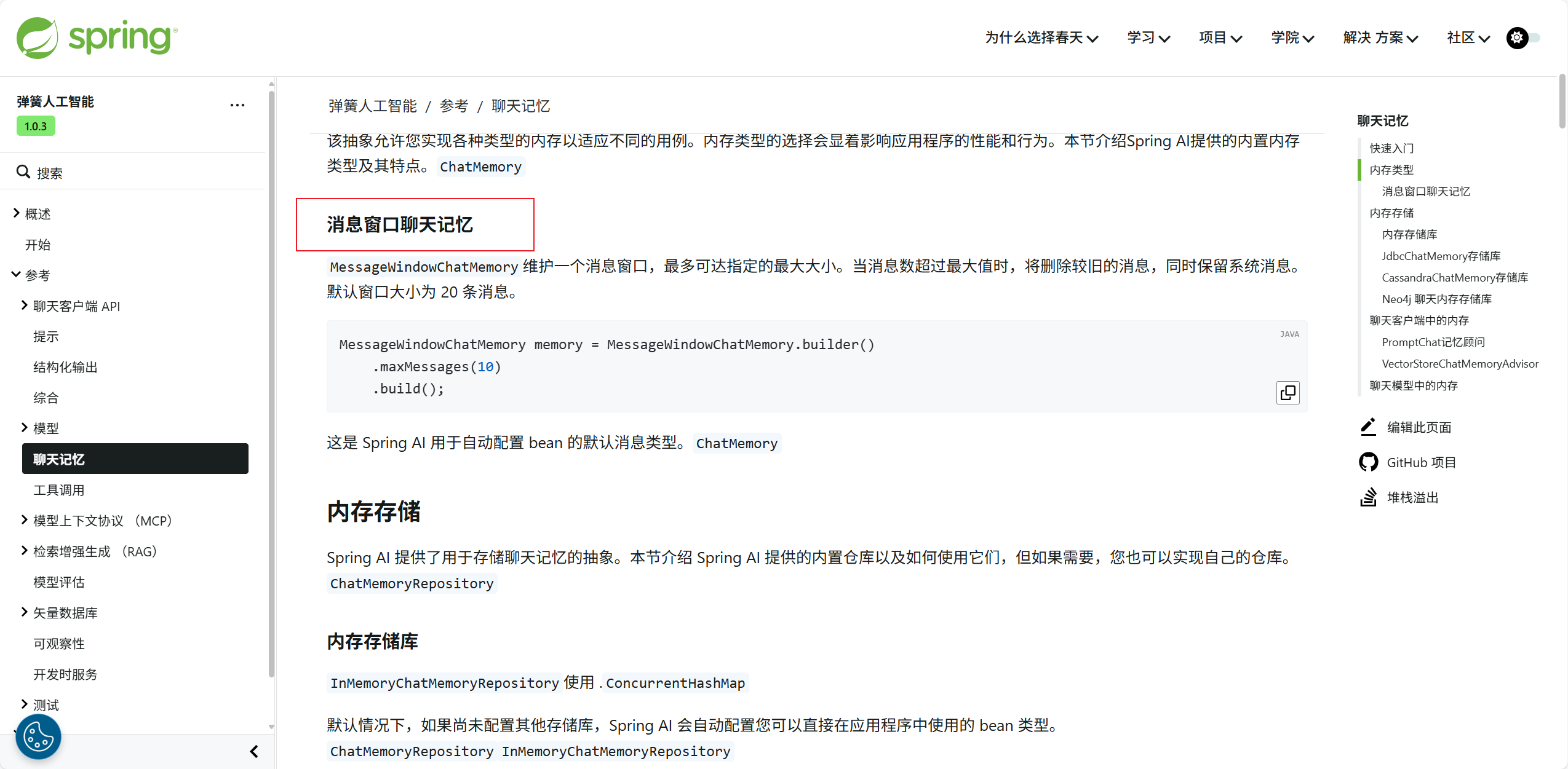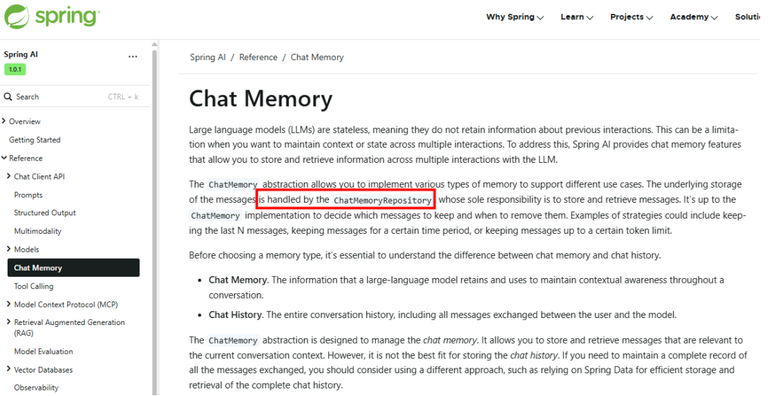 SpringAIAlibaba实现了SpringAI的ChatMemory