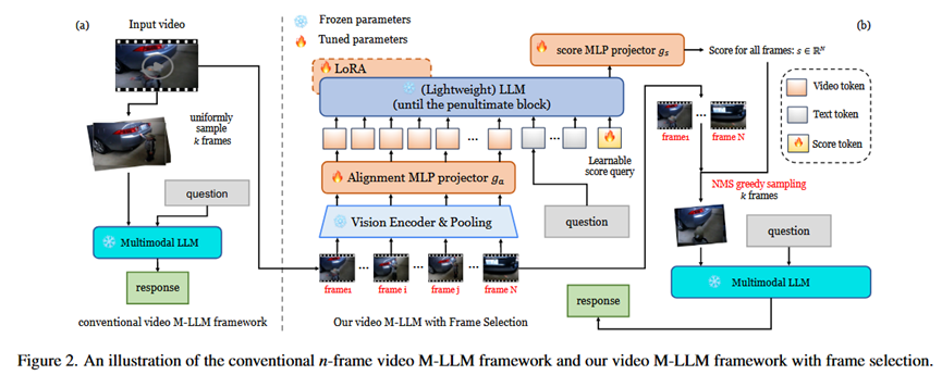 为了解决上述问题,论文提出了一个轻量级的、基于M-LLM的视频帧选择器(Frame Selector)。
