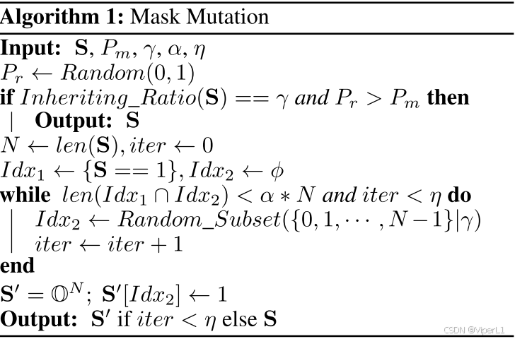 ①初始种群:对于给定的初始子网络,通过继承率和其突变概率和以及掩码和掩码突变率