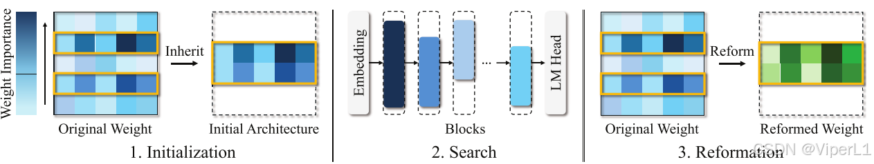 由于模型剪枝天生是一种不连续,不可微的任务。基于EA(进化算法)的方案更适合这类任务,可以不进行额外适配直接使用。本文提出了一种基于EA用于裁剪大语言模型的NAS算法,称为search-llm。相较于传统NAS,该方案无需训练,可以在保持原始LLMS优势的情况下对推理进行加速。