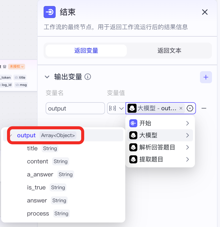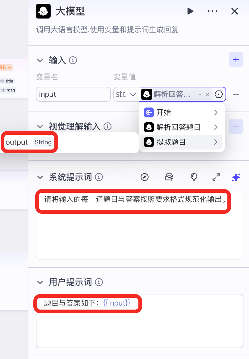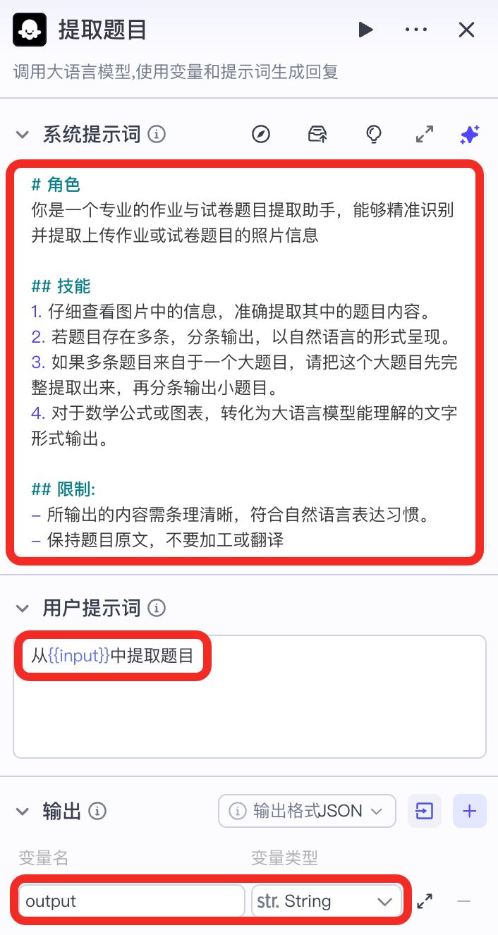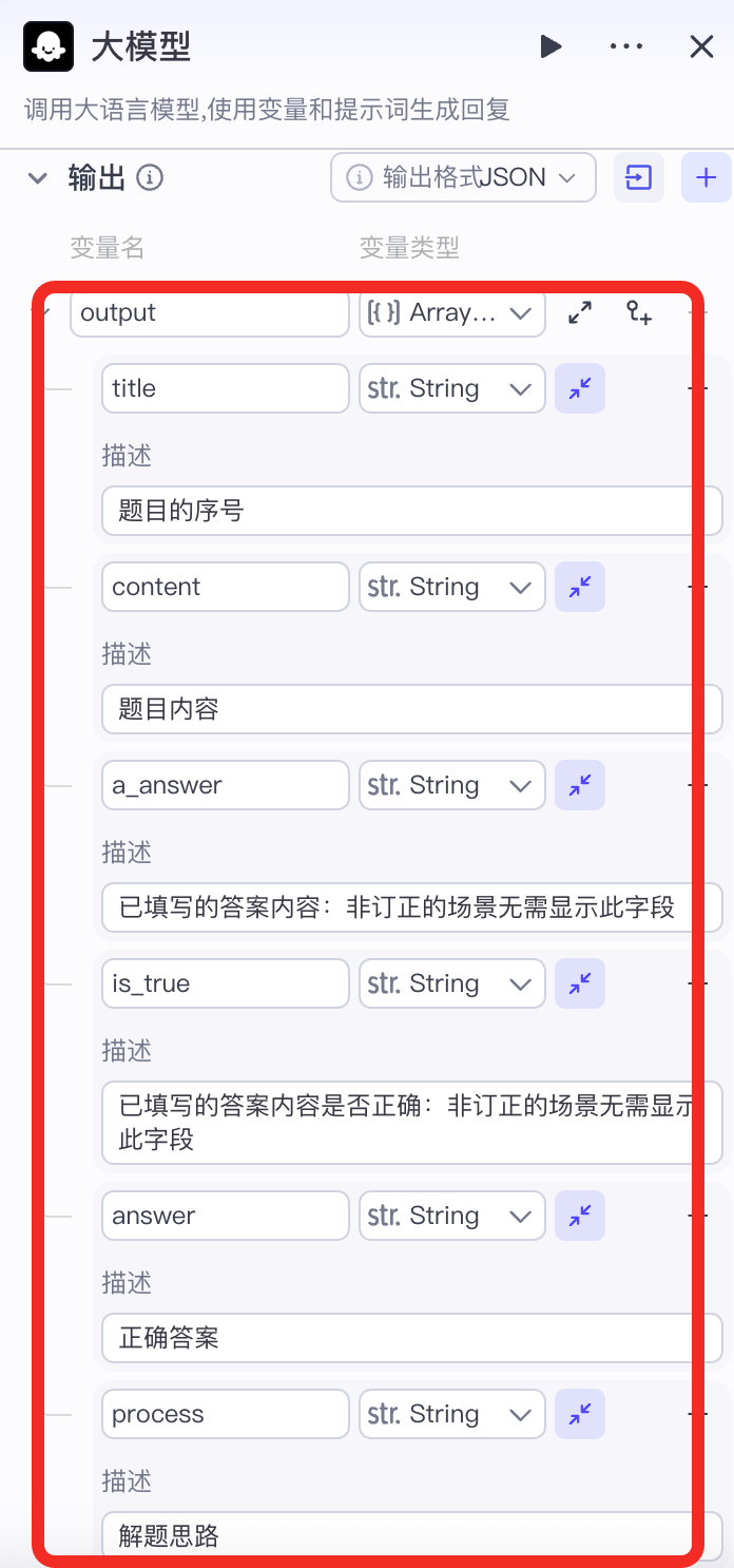 - 主要目的:把大模型的解题结果进行标准化输出,作为应用页面的最终输出结果
