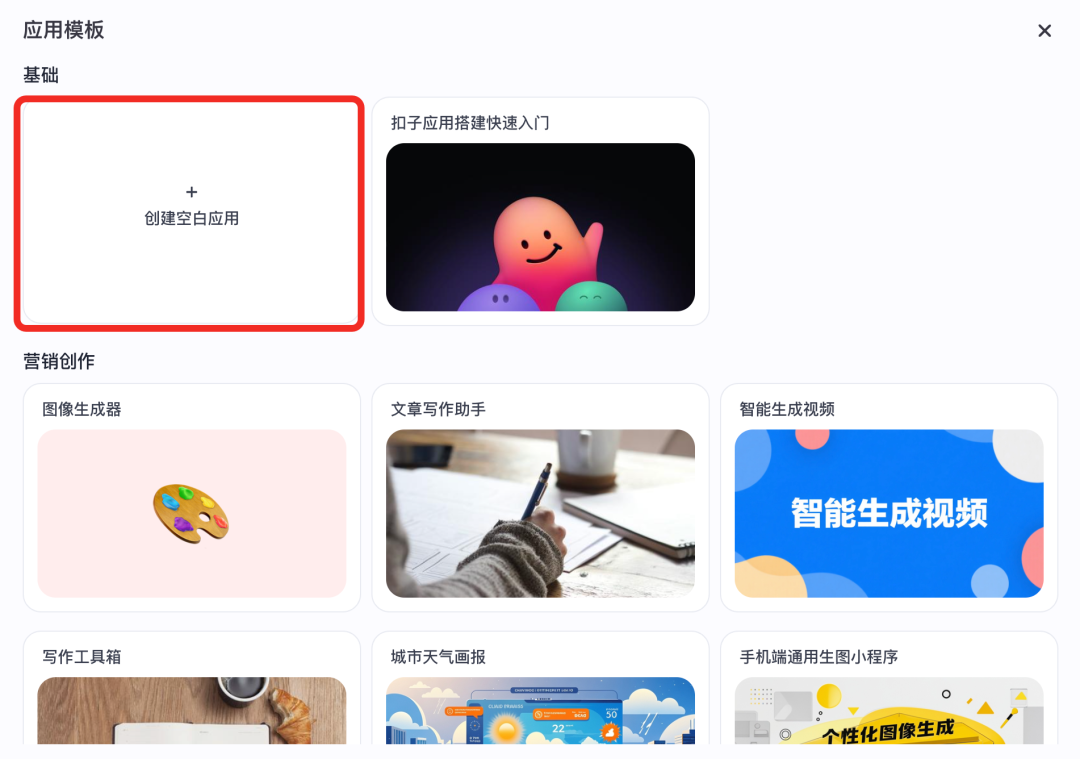第一步:扣子创建应用——创建空白应用——应用名称和介绍自由发挥填写,和最终效果关系不大