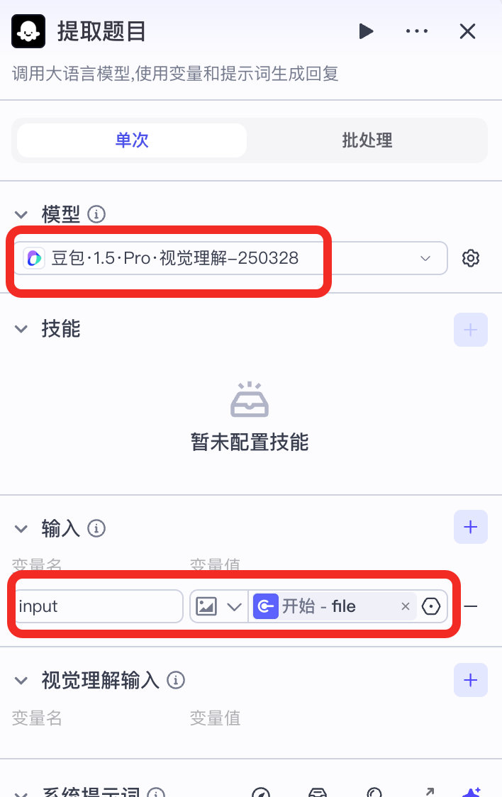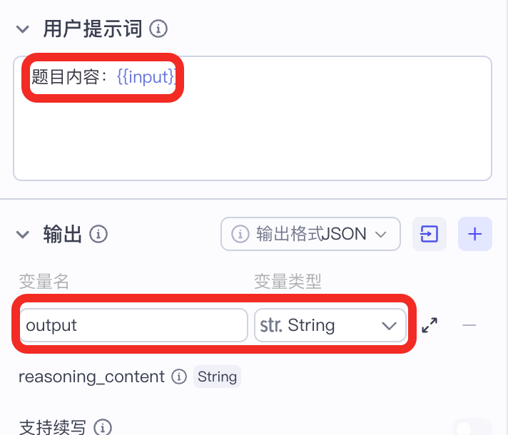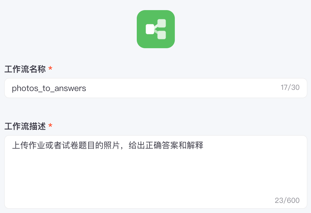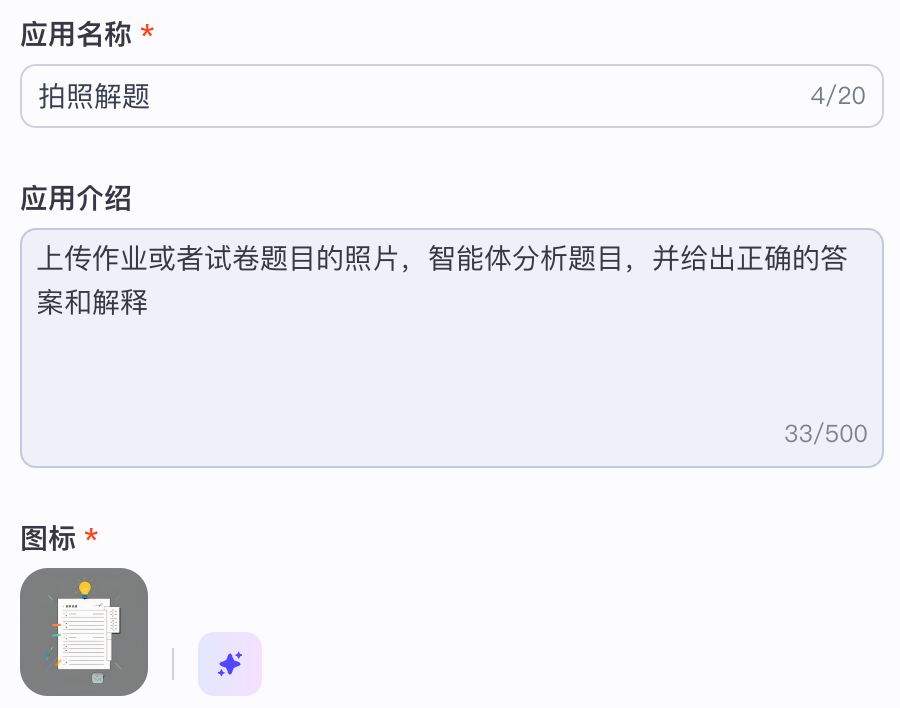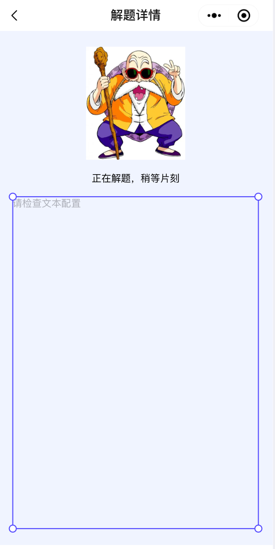 - 主要目的:图片组件用来装饰,文本组件向用户展示“正在解题,稍等片刻”,Markdown组件用来展示大模型的输出结果;工作流运行完后以上内容都会被隐藏,为显示最终结果腾出地方。
