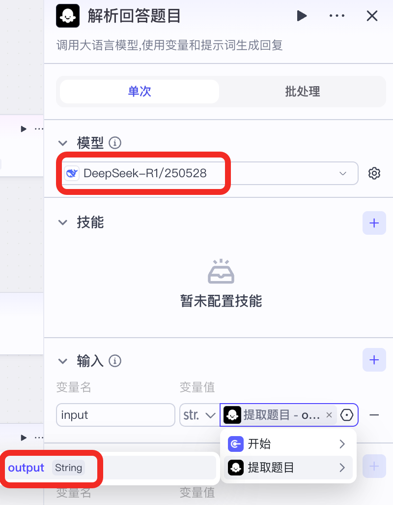 - 主要目的:利用大模型解题,作为应用页面的中间输出结果;需要选一个推理能力强的大模型