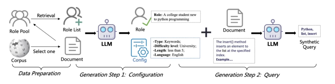 - 为每个文档分配特定的角色,以模拟潜在用户查询该文档。