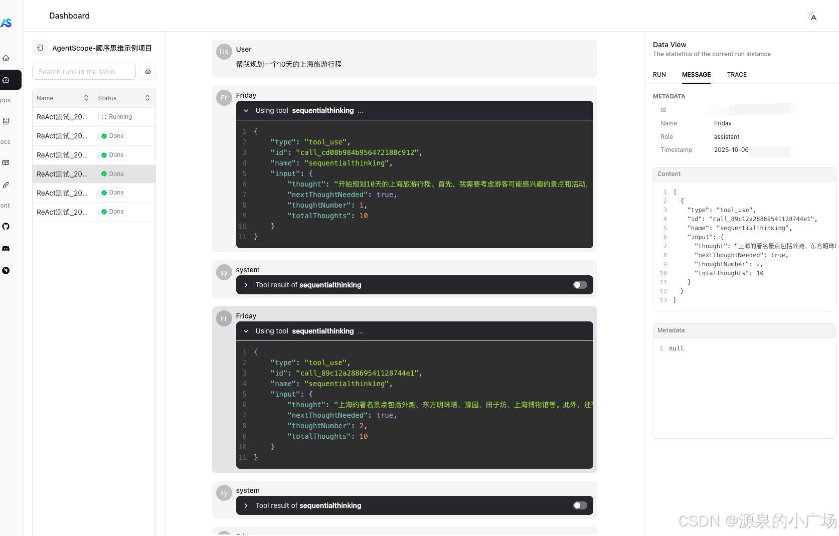 agentscope、agent scope studio、智能体框架、工具调用、mcp server、sequential thinking mcp server、顺序思考、任务规划、智能体、agent、react agent、meta planner agent