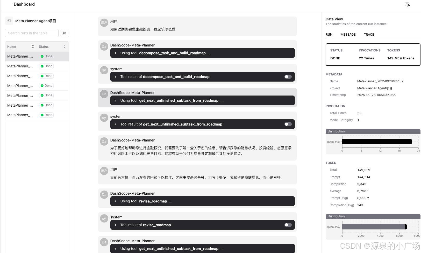 react agent相对比较简单,复杂一些的agent可以参考meta_planner_agent项目,在该项目中我们启用planner的工具能力,需要调整下代码,增加planner_mode="enforced",也就是强制启用planner模式,执行规划动作。否则原来的版本会自己判断任务是否简单,只有判定为复杂的任务才会启用,具有不确定性。为了实验方便,我们设置为强制每次都启用。