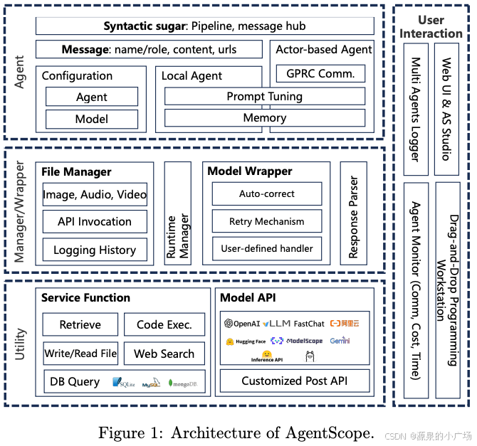 Utility 层 :提供模型调用、代码执行、数据库访问等底层功能,内建重试机制;Manager & Wrapper 层:负责资源管理与 API 调用封装,并支持可定制的容错逻辑;