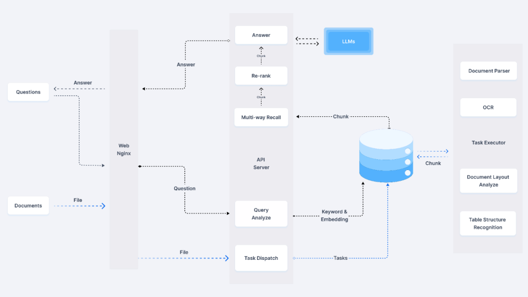 RAGFlow:一款专注于知识库应用的智能体构建工具。它核心优势在于基于文档和知识库快速构建问答与应用,同时提供了可视化的组件拖拽功能来组装智能体。但RAGFlow可用于搭建智能体的组件和工具数目远小于Coze和Dify。