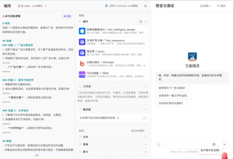 对于没有编程背景的开发者或业务人员而言,低代码/无代码平台提供了一条构建AI智能体的“快速通道”。这类框架通常提供直观的网页界面,通过提示词生成、模块拖拽与图形化配置,让用户在无需编写代码的情况下,也能组装出功能完整的智能体。
