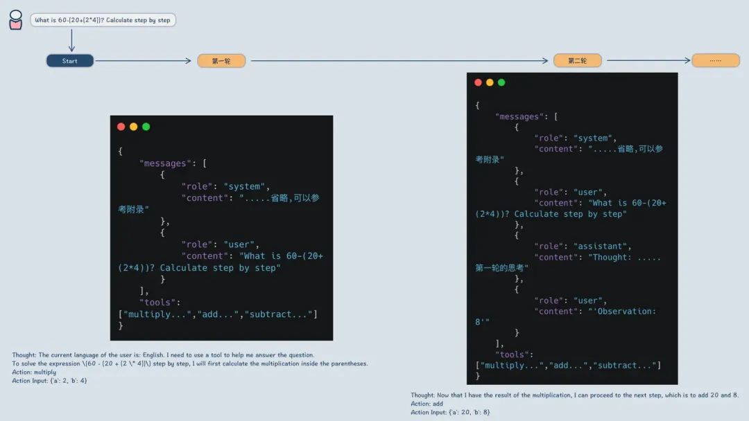 这个思考的流程就是ReAct,后面有实际案例,这里先理解这个概念。
