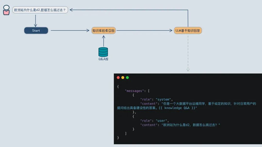 直白的理解为用检索到的知识,来增量生成答案的质量。比如我有一个关于数仓各种问题处理的Q&A,想要做一个问答机器人,这个问答机器人要基于我的Q&A回复用户。这个 检索Q&A -> 基于检索到的Q&A回复用户,这个流程就是一个典型的RAG链路。也显而易见,RAG的最终目标是生成靠谱的答案给到用户。