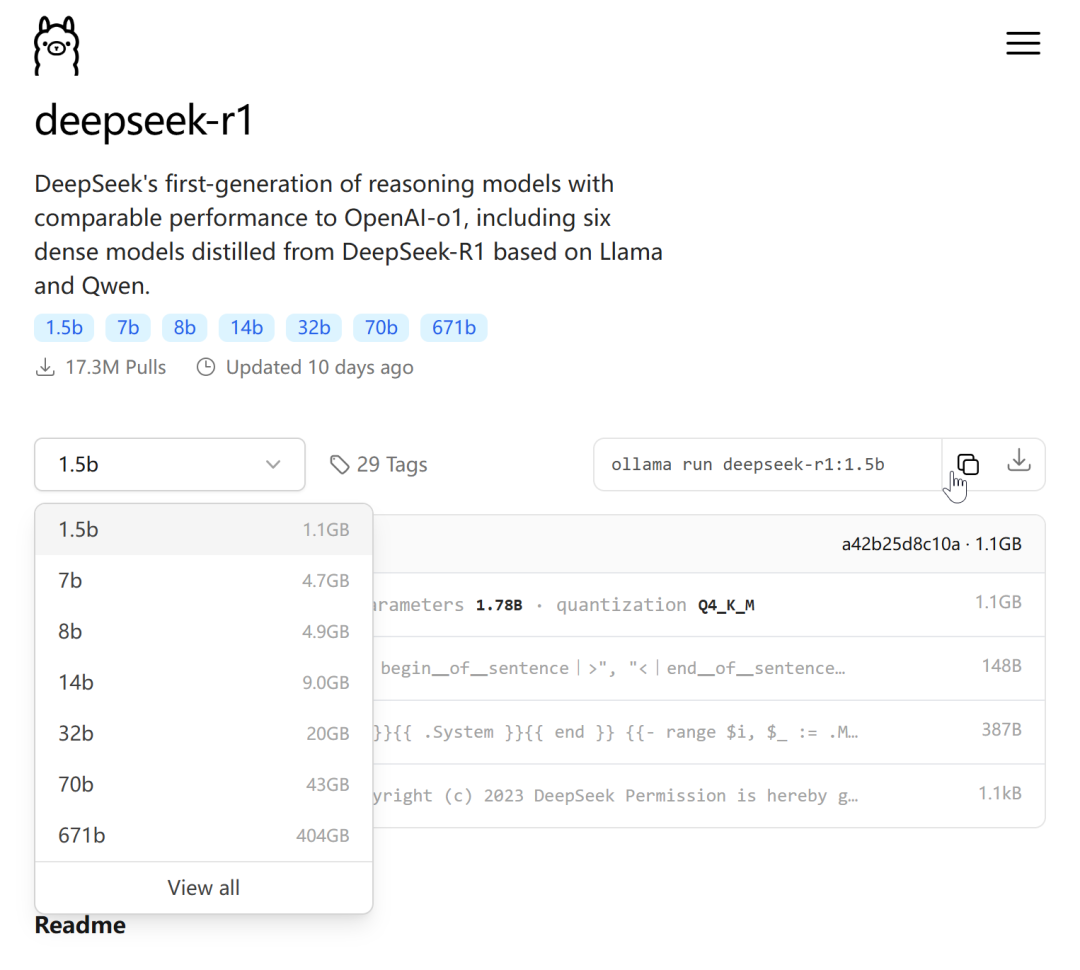 2.在 Ollama 模型列表中复制命令ollama run deepseek-r1:1.5b