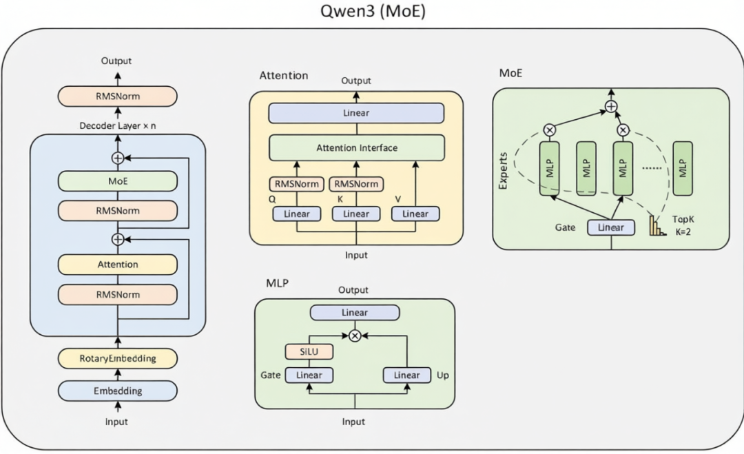 这么讲是不是还是很抽象,那么究竟什么是一个混合专家模型 (MoE) 呢?作为一种基于 Transformer 架构的模型,混合专家模型主要由两个关键部分组成: