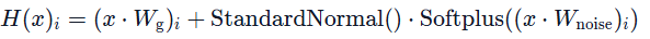 Shazeer 等人的工作还探索了其他的门控机制,其中包括带噪声的 TopK 门控 (Noisy Top-K Gating)。这种门控方法引入了一些可调整的噪声,然后保留前 k 个值。具体来说: