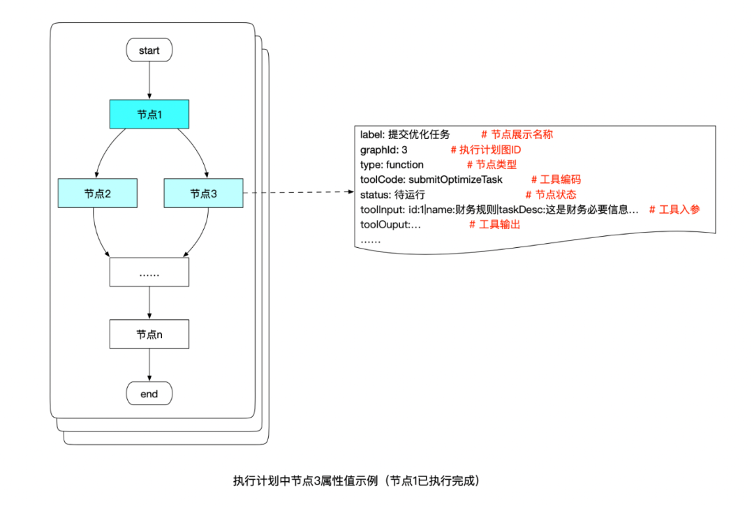 在基于 Reflection 自主规划模式下,执行计划的节点可具象化成 function 类型节点。当一个工具执行结束后,大模型会根据工具执行结果刷新当前执行计划的结构,刷新过程中会填充“下一个待执行”节点的参数。那么核心问题来了:节点(工具)的参数值以什么格式组装到执行计划节点中?工具格式设计需兼顾大模型的理解能力、上下文 token 的节省,以及工程解析的便捷性。