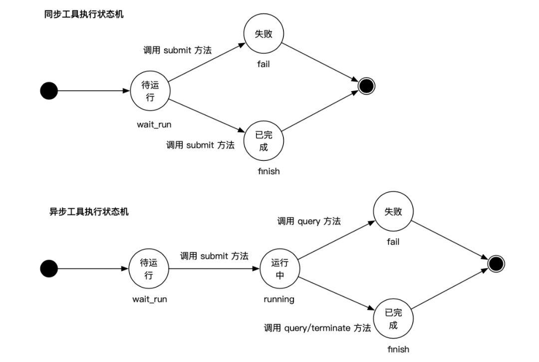 工具执行由异步框架来驱动,执行状态机由系统推进,非大模型驱动。